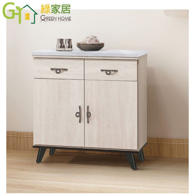 【綠家居】拉德2.7尺二門二抽岩板低餐櫃(加厚岩板桌面板)