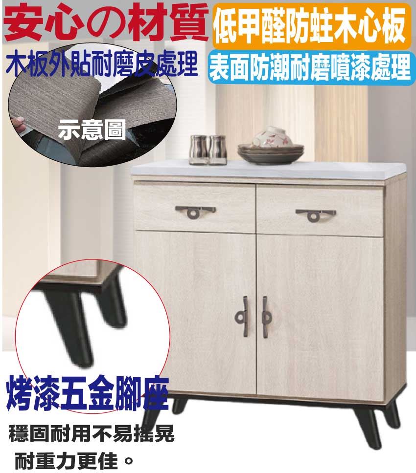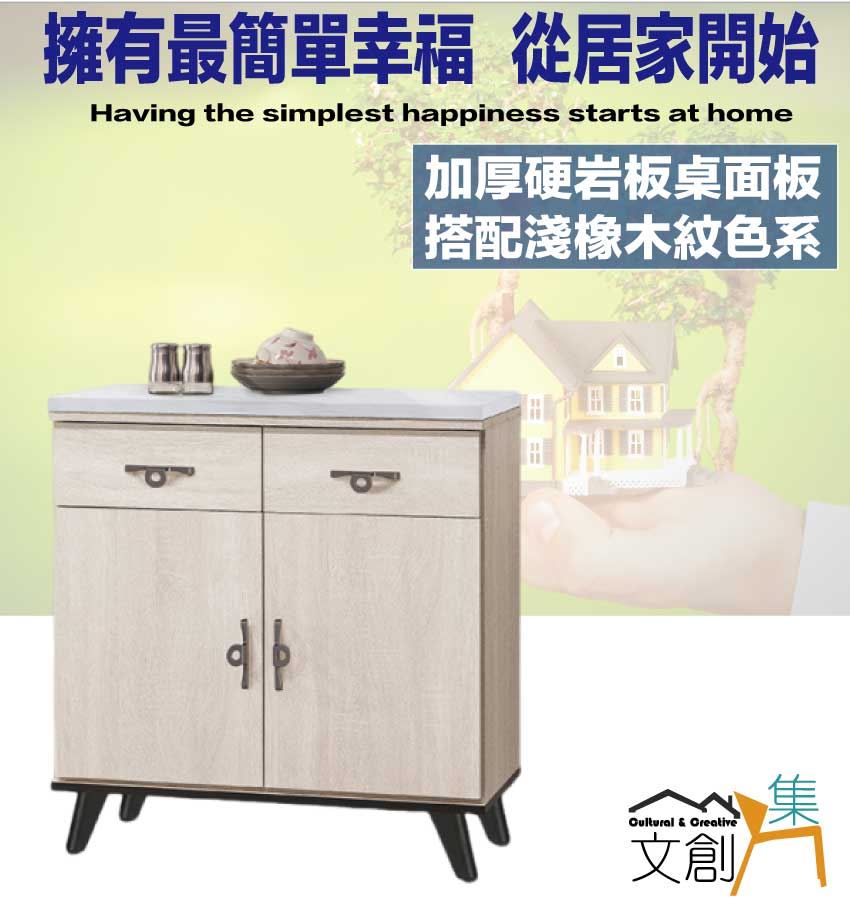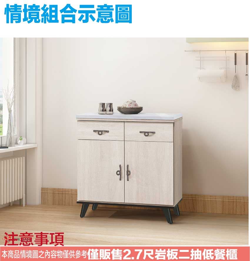 - 產品名稱:【綠家居】拉德2.7尺二門二抽岩板低餐櫃(加厚岩板桌面板)