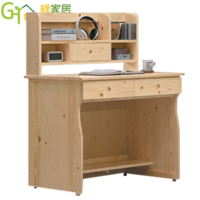 【綠家居】倫巴 現代2.7尺三抽實木書桌(含桌上書架)