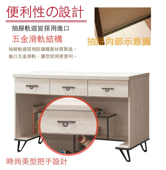 商品介紹 | 【綠家居】洛沃 時尚4尺三抽書桌 淺橡木紋色系+現代簡約風格+安心材質製造,整體採用防蛀木心板+五金滑軌結構+防鏽黑漆腳座等安心材質製造,搭配採用三抽屜+開放式收納等收納空間設計,全由專人配送到家,專業安心服務,替你省下更多時間! 【商品特色】 淺橡木紋色系+現代簡約風格+安心材質製造,使用放心+搭配居家更便利 採用防蛀木心板+五金滑軌結構防鏽黑漆腳座座等安心材質製造 採用三抽屜+開放式收納等收納空間設計 此商品不需要DIY組立,此商品為組立後之成品 品質保證、專業設計、貼心服務 全由專人配送到家,專業安心服務,替您省下更多時間 |