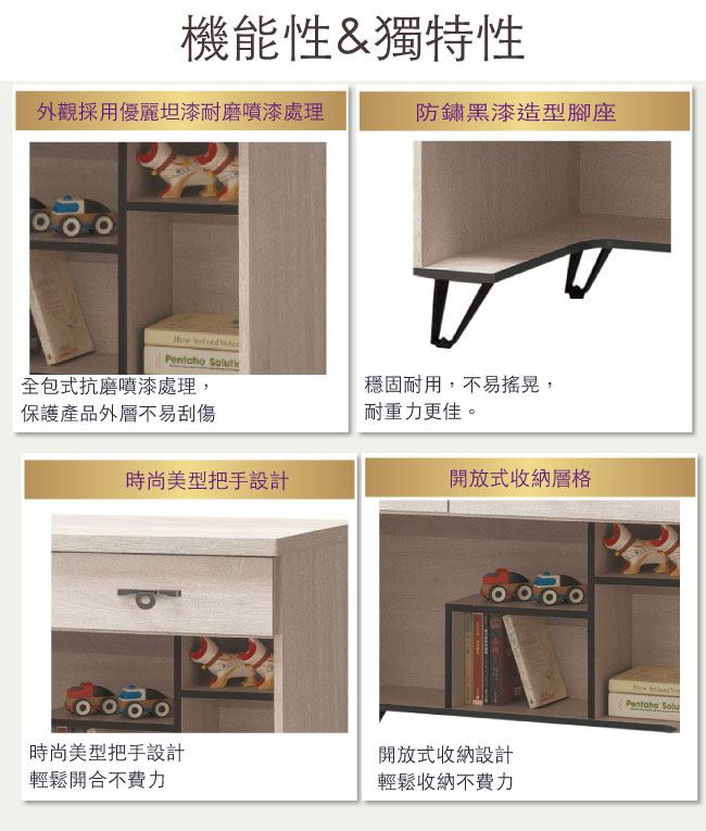 - 三抽屜+開放式收納