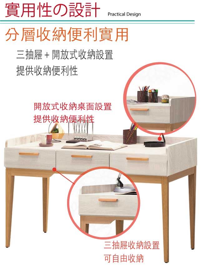 【綠家居】伊森瑪 現代4尺三抽書桌