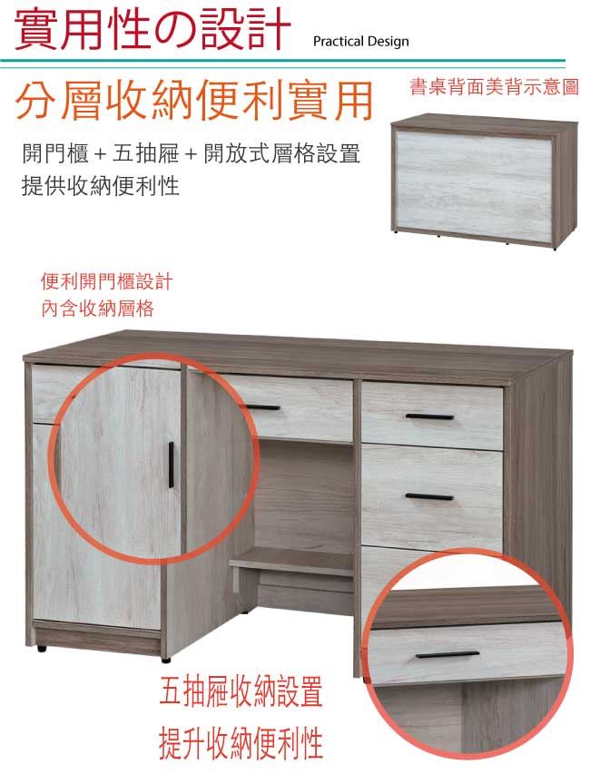【綠家居】蘇魯 時尚4.4尺五抽單門書桌