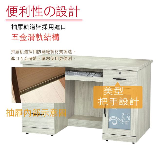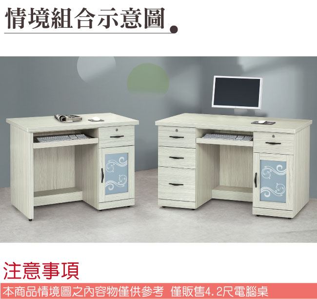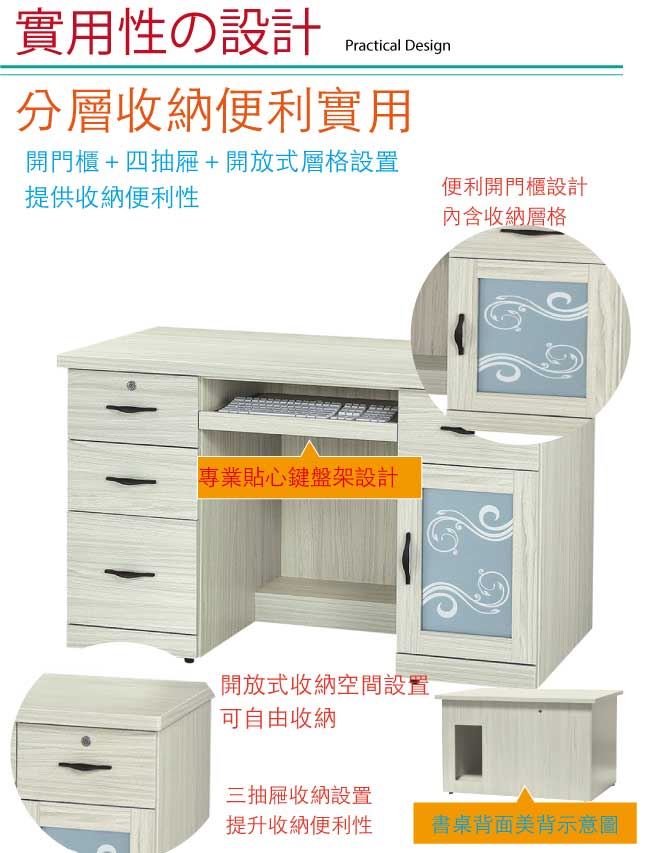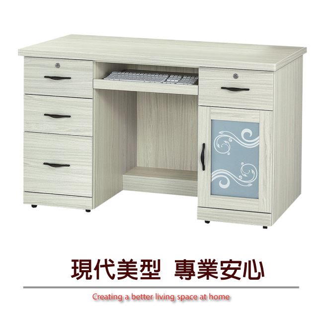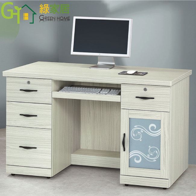 【綠家居】歐爾 時尚4.2尺四抽單門拉合鍵盤書桌