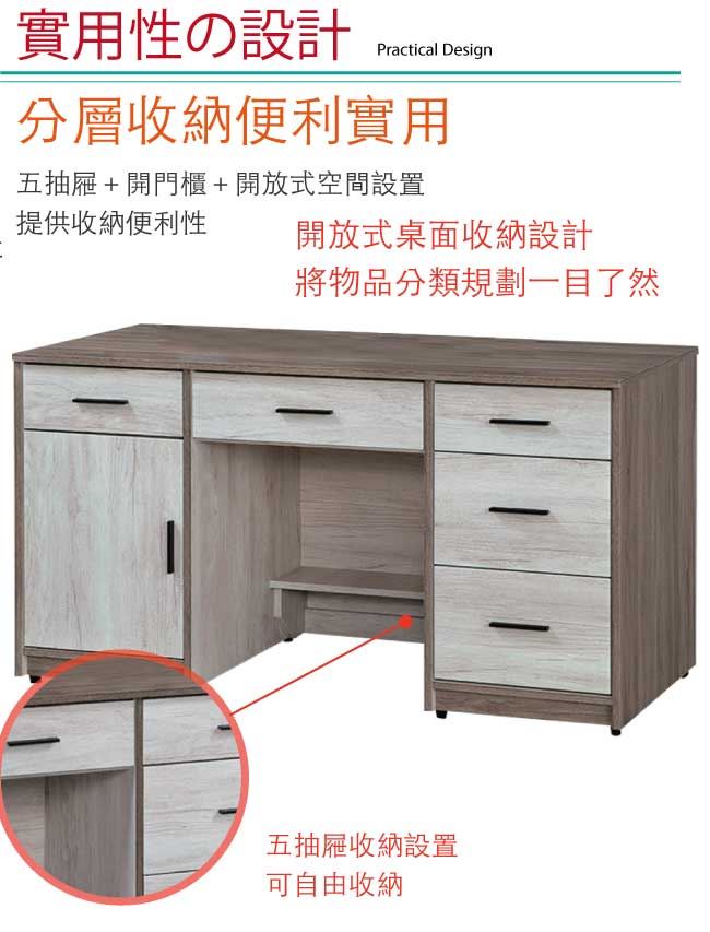 【綠家居】歌利 現代4.4尺五抽單門書桌/電腦桌