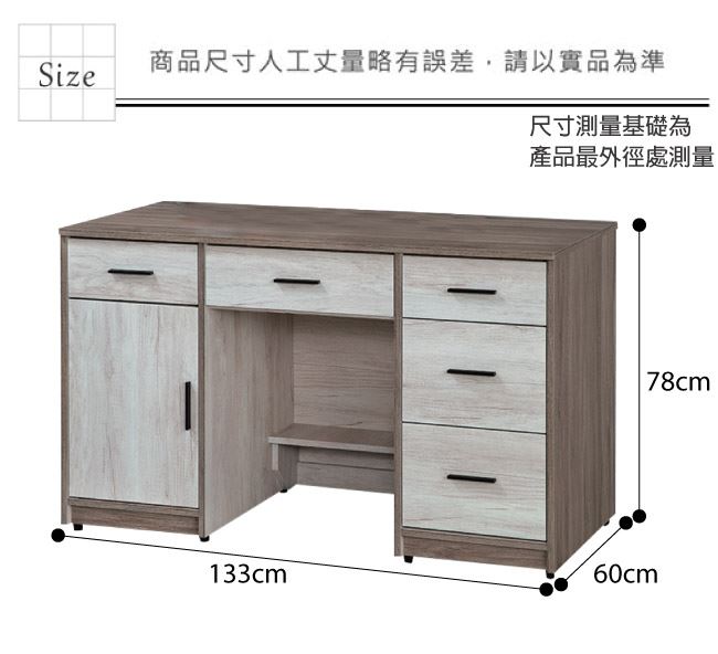 材質 | ◆產品名稱: 【綠家居】歌利 現代4.4尺五抽單門書桌/電腦桌 產品尺寸: 尺寸:(寬)133(深)60x(高)78/公分 ◆材質: 材質:防蛀木心板+五金滑軌結構+防潮耐磨腳座 塗漆:優利坦全包式耐磨噴漆處理