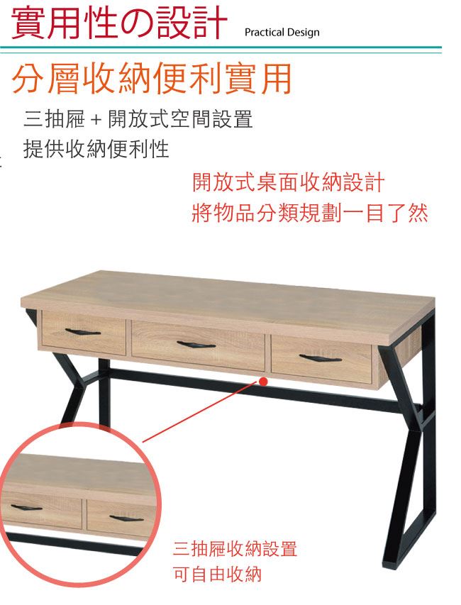 - 開放式收納層格+三抽屜