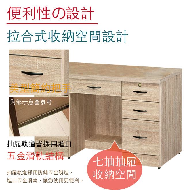 - 開放式收納桌面+七抽屜