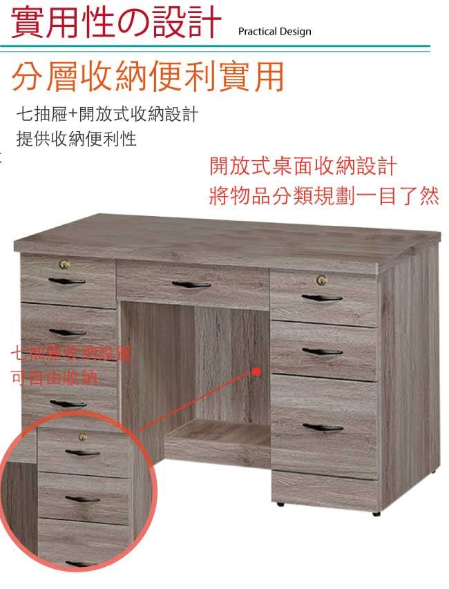 【綠家居】帕蒂 現代4尺七抽書桌/電腦桌(二色可選)
