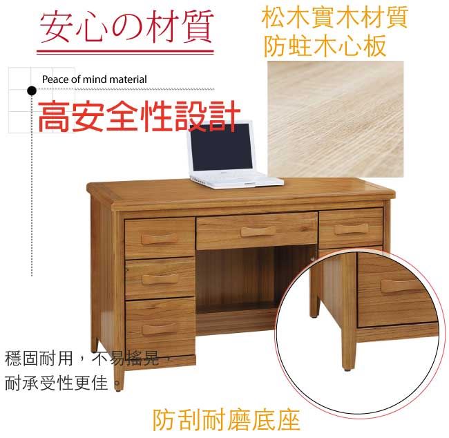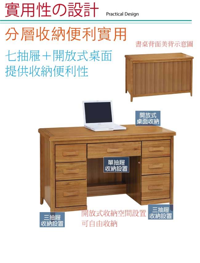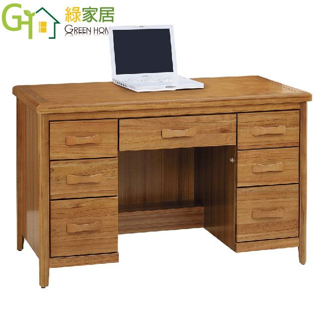 【綠家居】達怡4.2尺實木七抽書桌/電腦桌