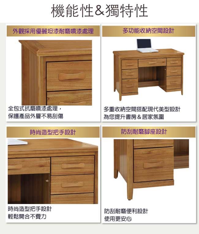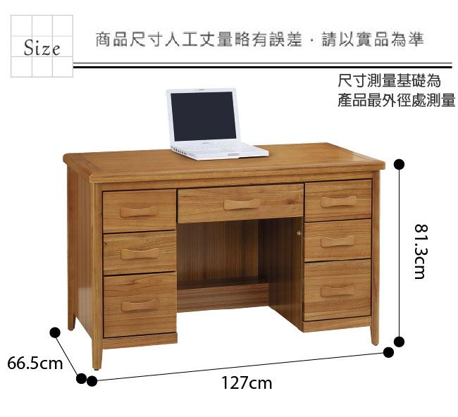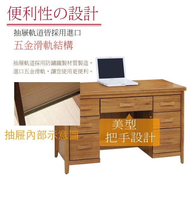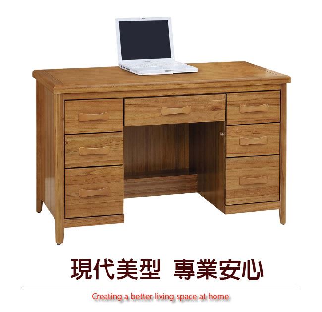 - ◆產品名稱:【綠家居】達怡4.2尺實木七抽書桌/電腦桌