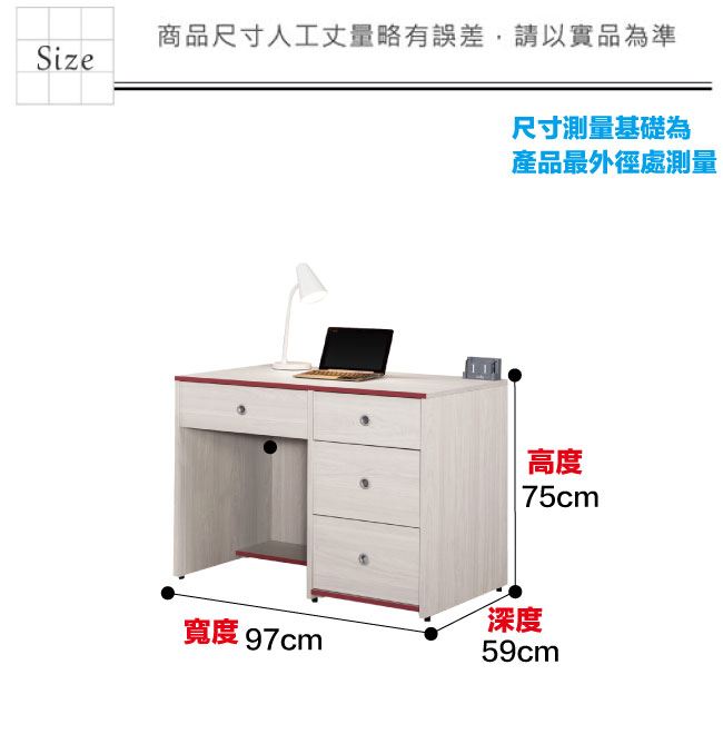 材質 | ◆產品名稱:【綠家居】瑪西卡3.2尺四抽書桌(二色可選) 尺寸:(寬)97x(深)59(高)75/公分 ◆材質: 材質:防蛀木心板+防潮耐磨腳座+五金滑軌結構 噴漆:防潮耐磨噴漆處理