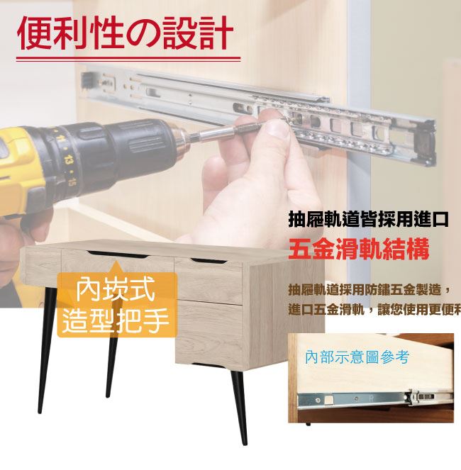 - 五金滑軌結構+橡木紋色系