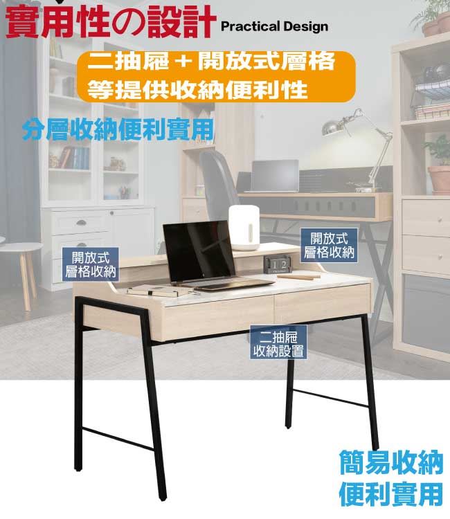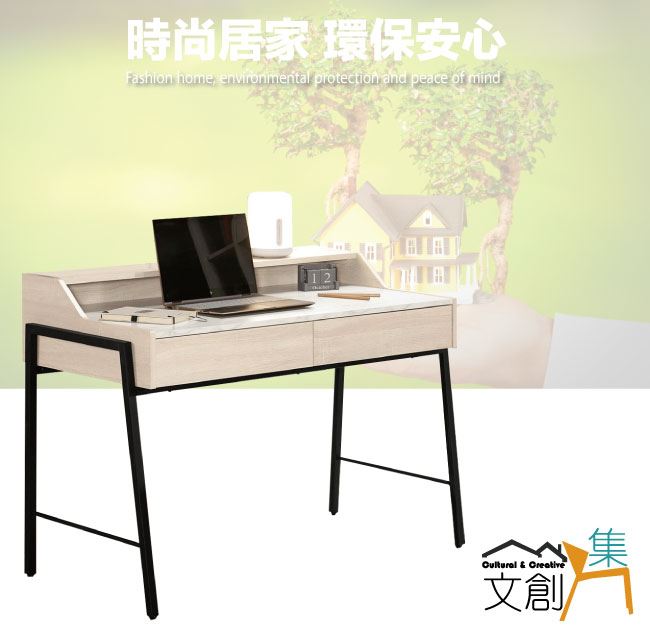 【綠家居】伯尼爾4尺雙色二抽書桌