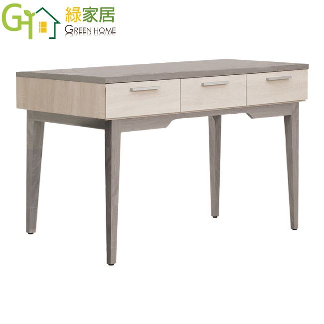 商品 介紹 | 【綠家居】芙娜雙色4尺三抽書桌 木紋雙色系+現代簡約風格+安心材質製造,整體採用防蛀木心板+防潮耐磨腳座+五金滑軌結構等安心材質製造,產品外層採用防潮耐磨噴漆處理搭配採用三抽屜+開放式桌面等收納空間設計,全由專人配送到家,專業安心服務,替你省下更多時間! 【商品特色】 木紋雙色系+現代簡約風格+安心材質製造,使用放心+搭配居家更便利 採用防蛀木心板+防潮耐磨腳座+五金滑軌結構等安心材質製造 產品外層採用防潮耐磨噴漆處理 採用三抽屜+開放式桌面等收納空間設計 此商品不需要DIY組立,此商品為組立後之成品 品質保證、專業設計、貼心服務 全由專人配送到家,專業安心服務,替您省下更多時間 |