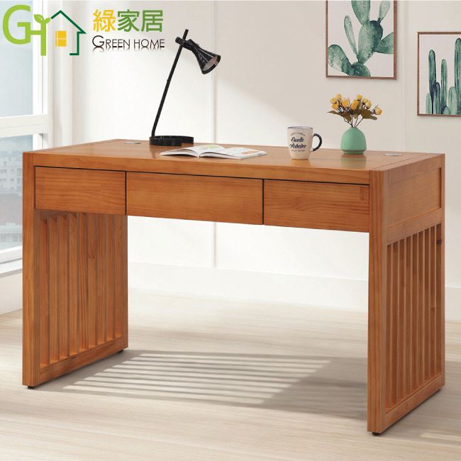 【綠家居】卡德實木4.2尺三抽書桌/辦公桌