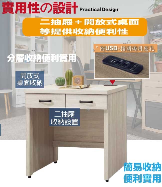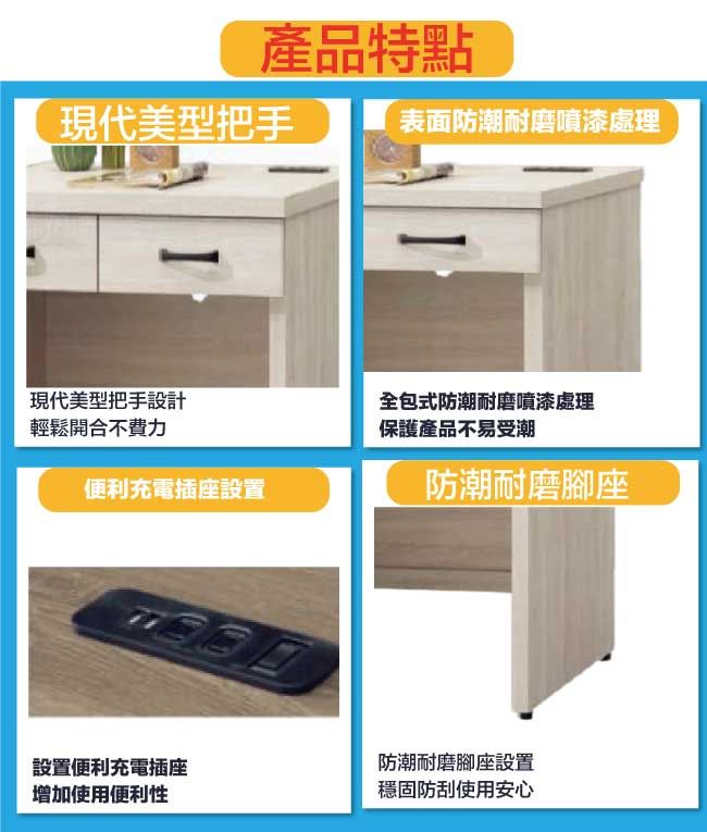 商品 介紹 | 【綠家居】美佳2.7尺二抽書桌(含便利插座設置) 淺橡木紋色系+現代簡約風格+安心材質製造,使用放心+搭配居家更便利,整體採用防蛀木心板+五金滑軌結構+防潮耐磨底座等材質製造搭配外層採用優莉坦耐磨全包式噴漆處理 ,採用二抽屜+開放式桌面+便利插座設置等收納空間設計,全由專人配送到家,專業安心服務,替你省下更多時間! 【商品特色】 淺橡木紋色系+現代簡約風格+安心材質製造,使用放心+搭配居家更便利 防蛀木心板+五金滑軌結構+防潮耐磨底座等材質製造 採用二抽屜+開放式桌面+便利插座設置等收納空間設計 此商品不需要DIY組立,此商品為組立後之成品 品質保證、專業設計、貼心服務 全由專人配送到家,專業安心服務,替您省下更多時間 |