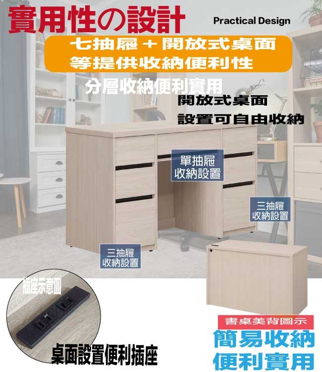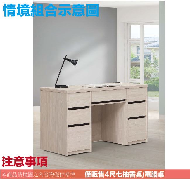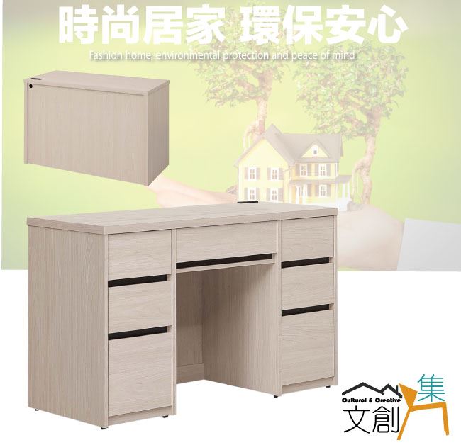 商品 介紹 | 【綠家居】麥森4尺七抽書桌 淺橡木紋色系+現代簡約風格+安心材質製造,使用放心+搭配居家更便利,整體採用防蛀木心板+防潮耐磨腳座+五金滑軌結構等材質製造搭配外層採用優莉坦耐磨全包式噴漆處理 ,採用七抽屜+開放式桌面等收納空間設計,全由專人配送到家,專業安心服務,替你省下更多時間! 【商品特色】 淺橡木紋色系+現代簡約風格+安心材質製造,使用放心+搭配居家更便利 防蛀木心板+防潮耐磨腳座+五金滑軌結構等材質製造 採用七抽屜+開放式桌面等收納空間設計 此商品不需要DIY組立,此商品為組立後之成品 品質保證、專業設計、貼心服務 全由專人配送到家,專業安心服務,替您省下更多時間 |