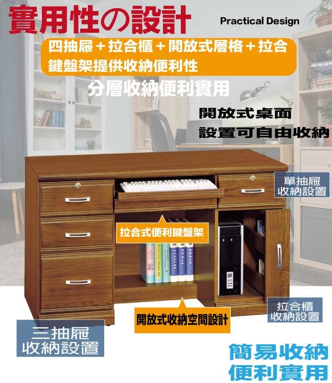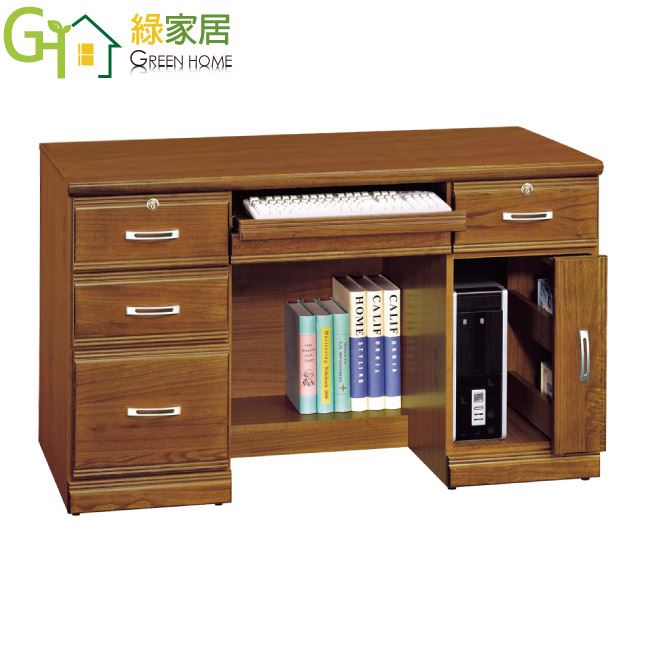 【綠家居】葛琳亞4.2尺實木鍵盤書桌