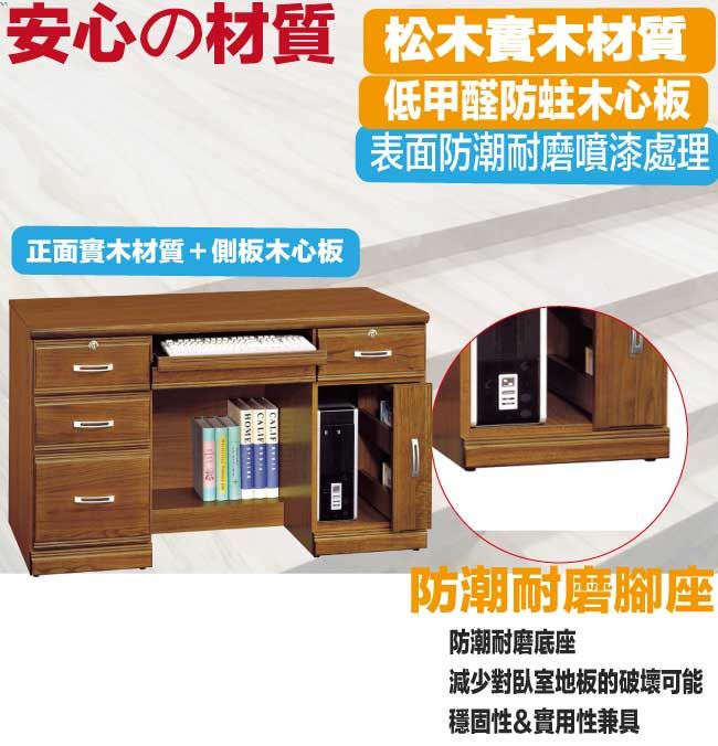材質 | ◆產品名稱:【綠家居】葛琳亞4.2尺實木鍵盤書桌 尺寸:(寬)127x(深)59(高)76/公分 ◆材質: 材質:松木實木+防蛀木心板+防潮耐磨腳座+五金滑軌結構 噴漆:防潮耐磨噴漆處理