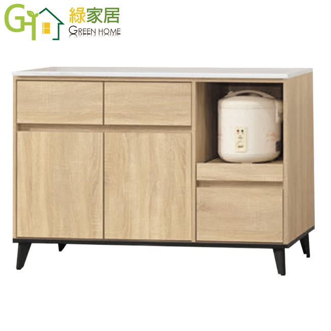 【綠家居】白布加岩板4尺二門拉盤三抽餐櫃(六色可選)
