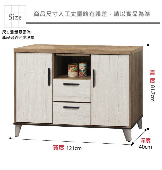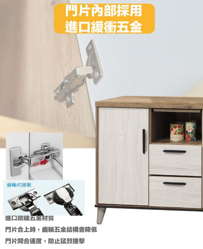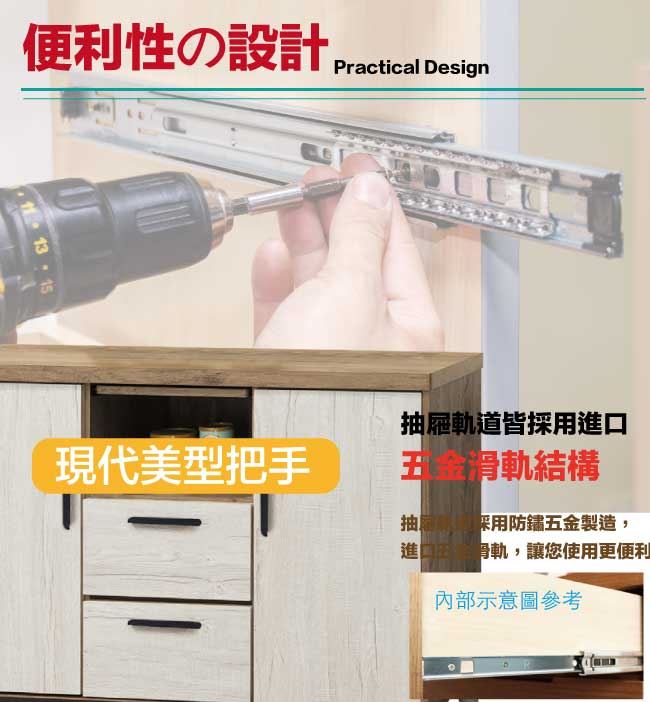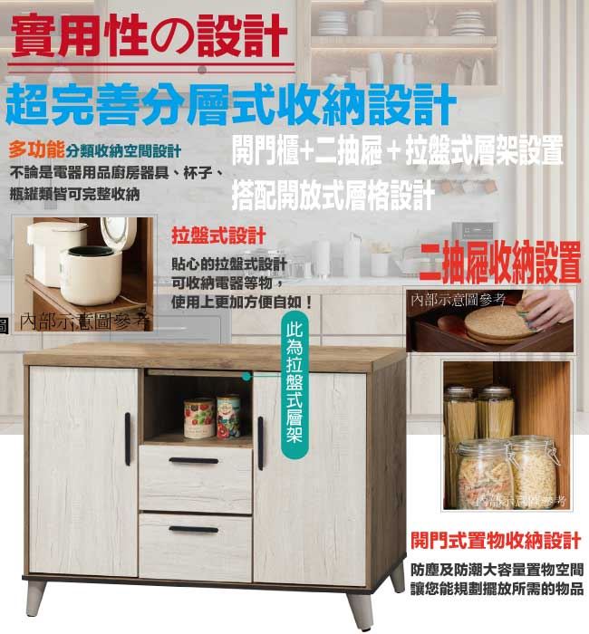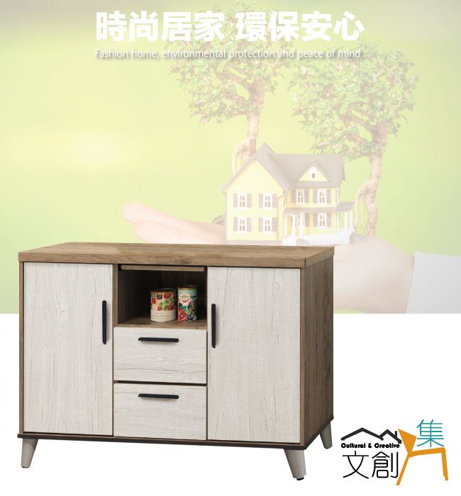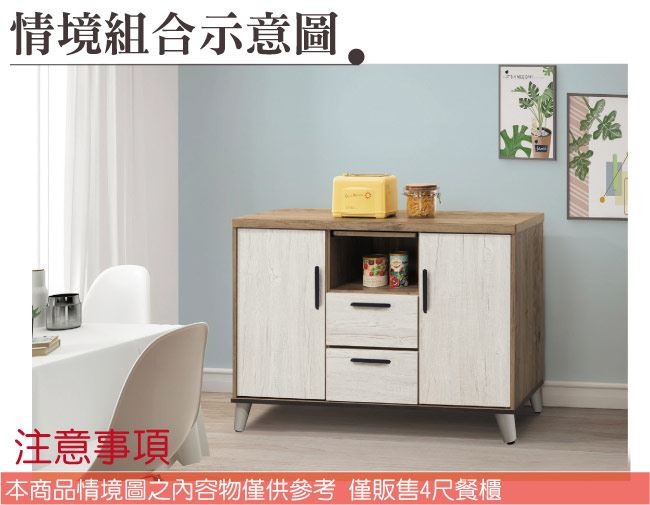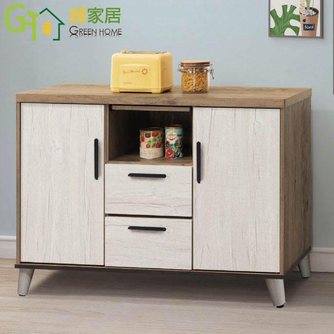 【綠家居】艾布雙色4尺二門拉盤二抽低餐櫃