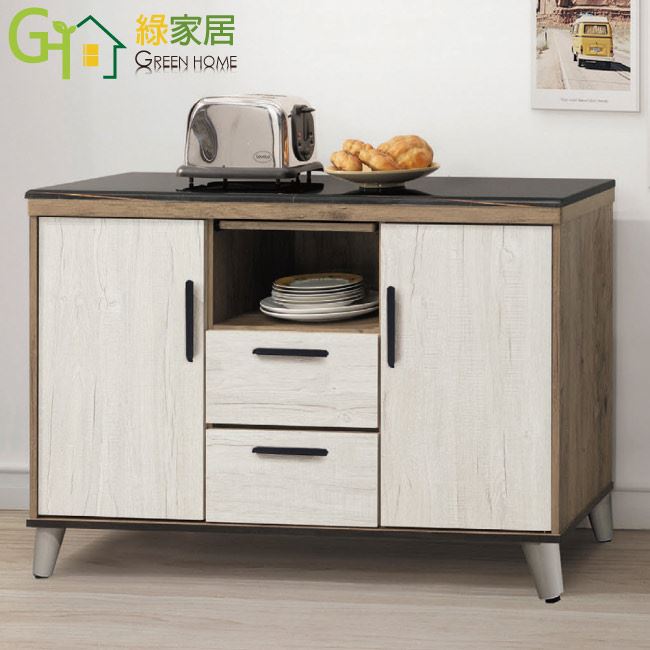 【綠家居】艾布雙色4尺黑雲石面低餐櫃