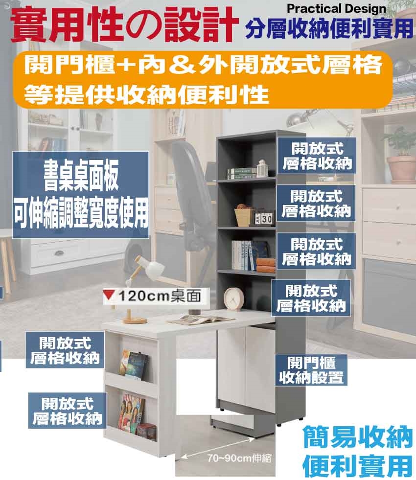 【綠家居】維斯4尺可伸縮二門書桌&書櫃組合