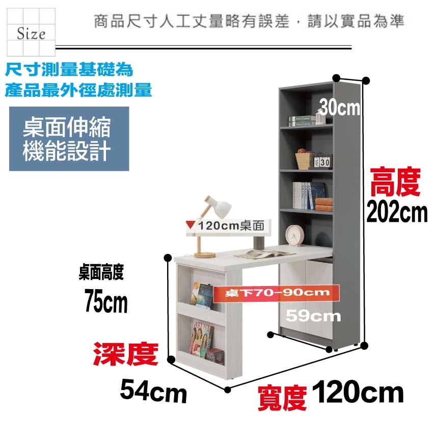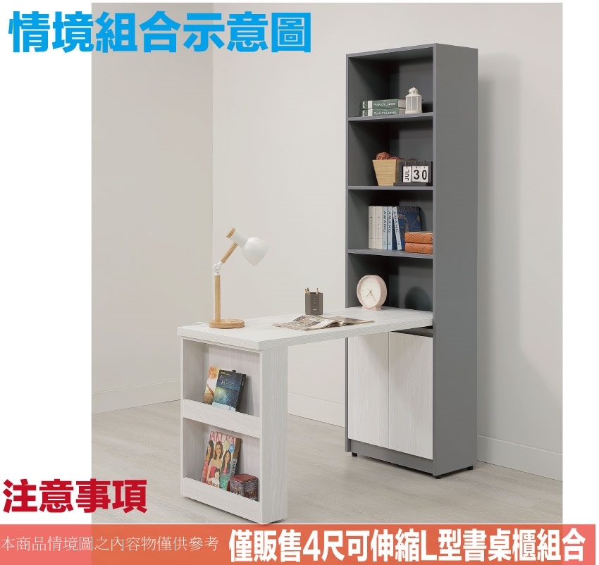 - ◆產品名稱:【綠家居】維斯4尺可伸縮二門書桌&書櫃組合
