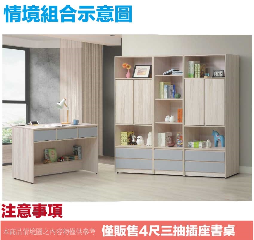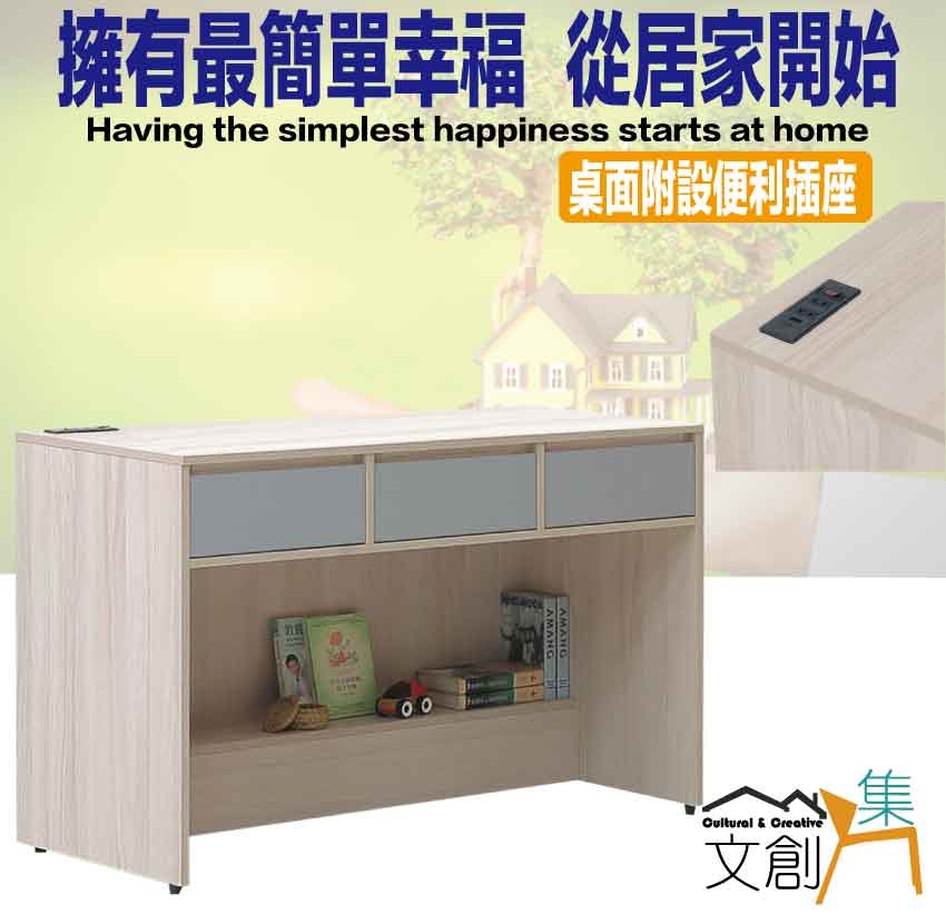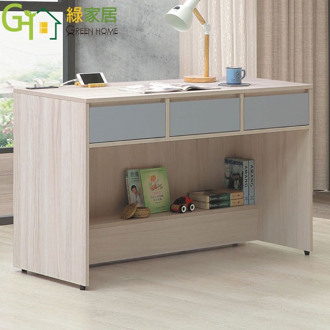 【綠家居】莫凡雙色4尺三抽書桌(桌面插座設置)