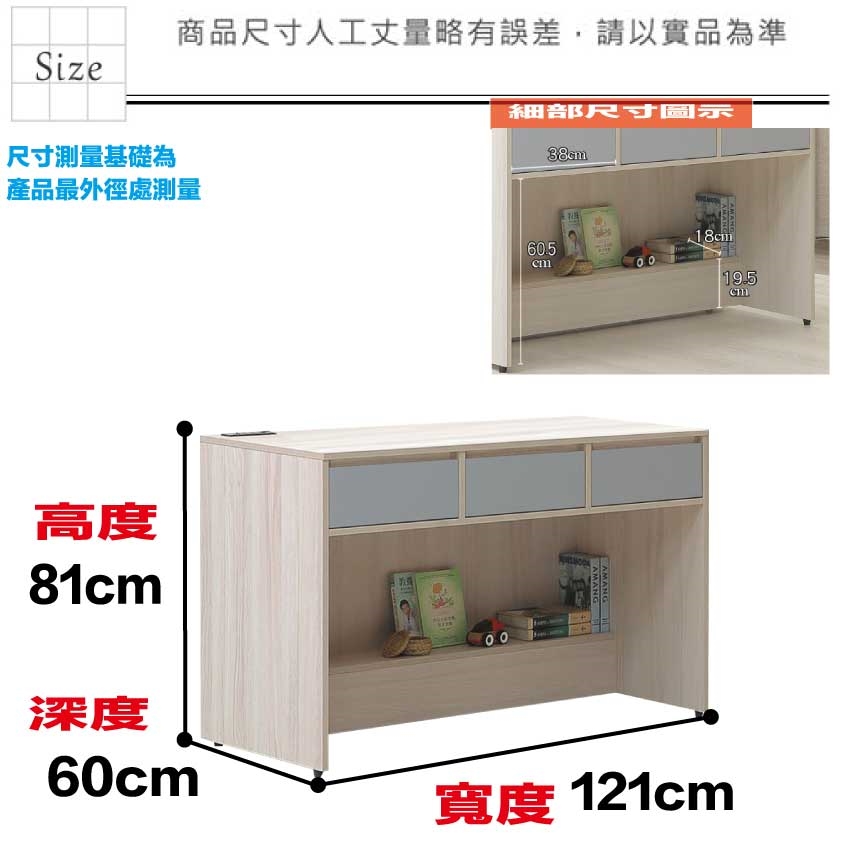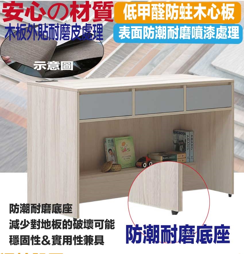 - ◆產品名稱:【綠家居】莫凡雙色4尺三抽書桌(桌面插座設置)