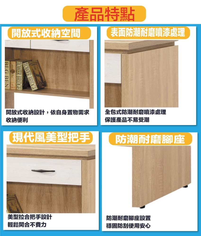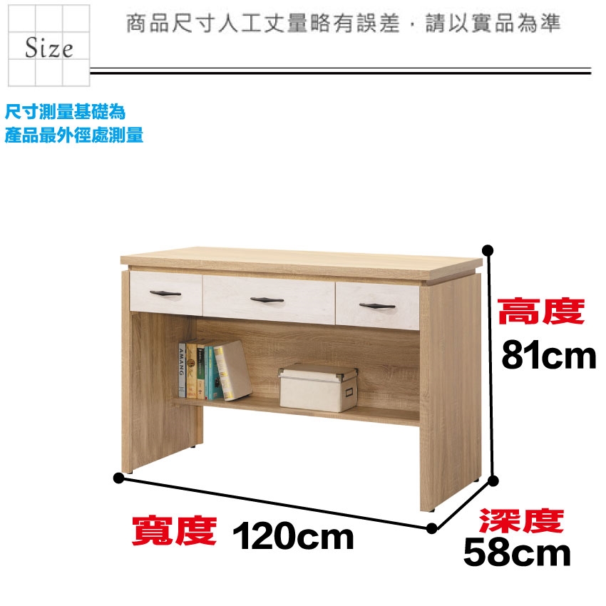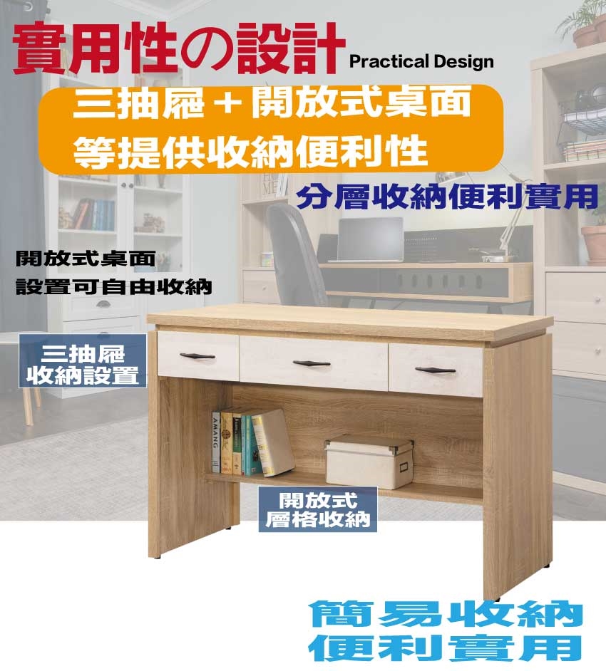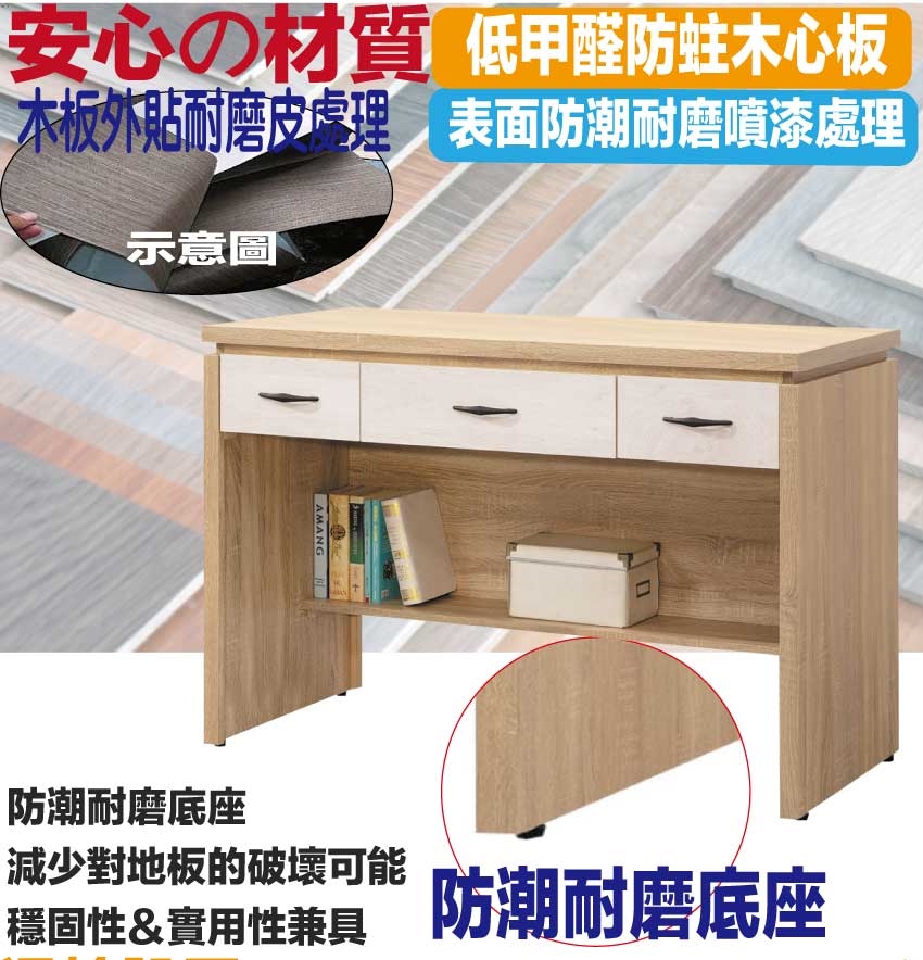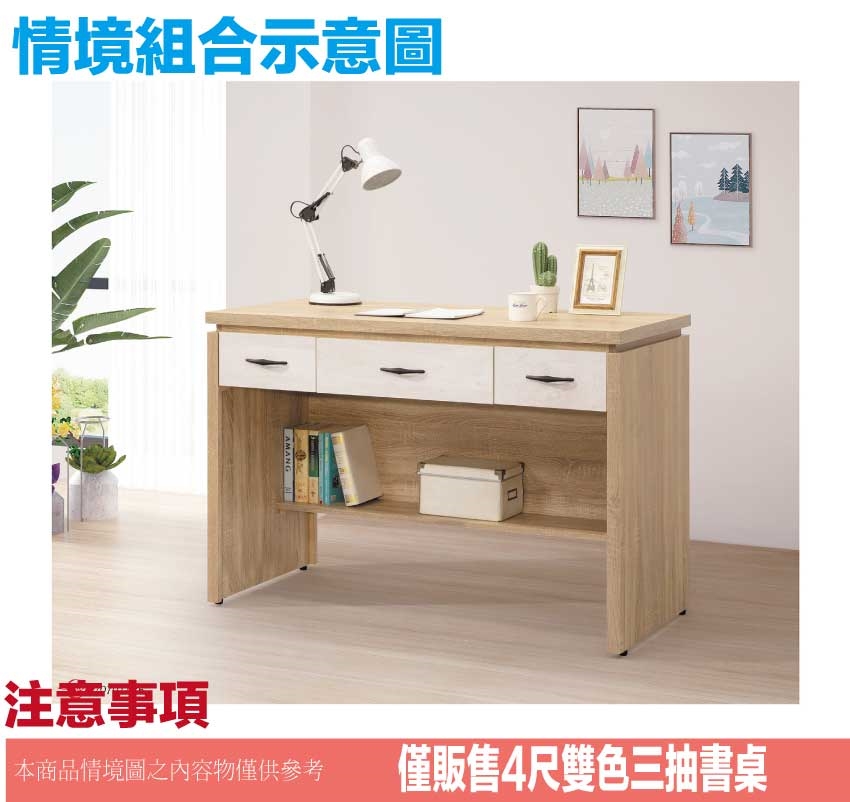 - ◆產品名稱:【綠家居】美尼利雙色4尺三抽書桌