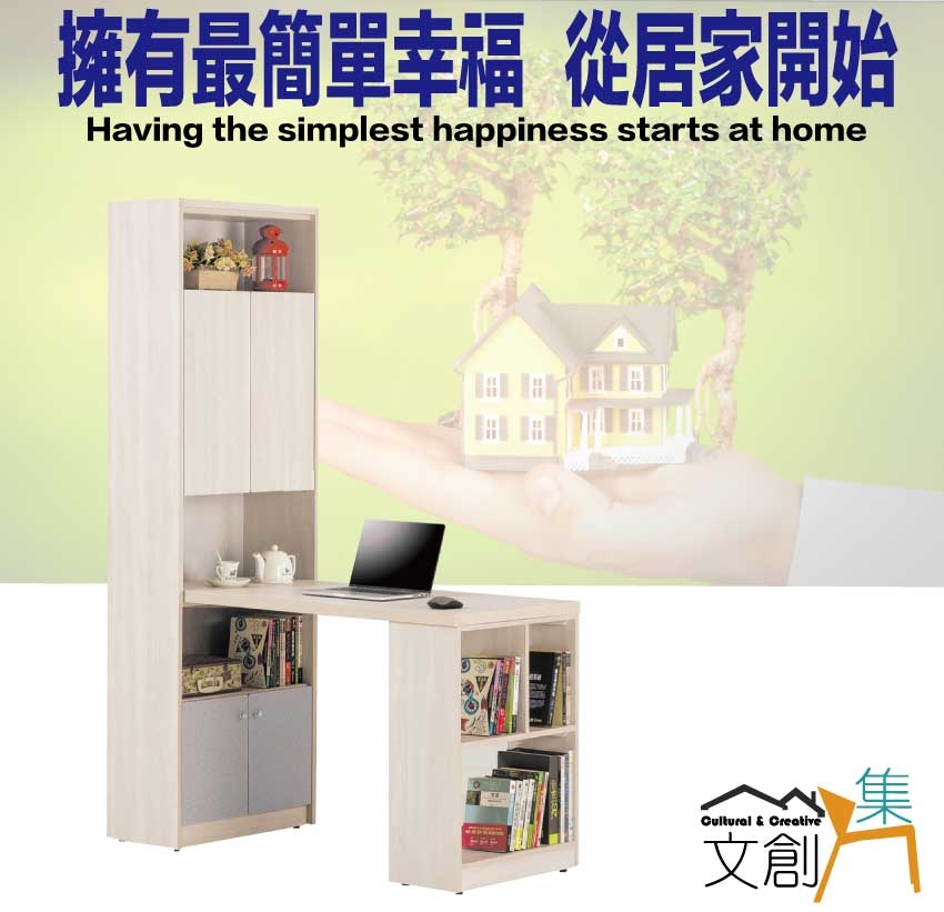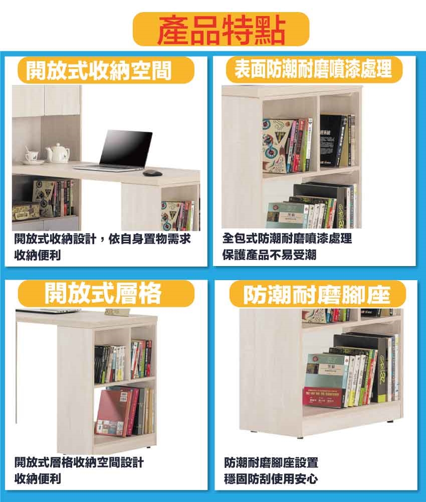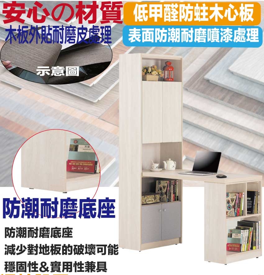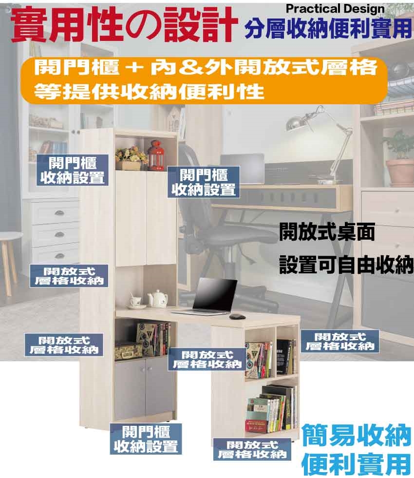 搭配採用開門櫃+開放桌面+內&外開放層格等收納空間設計