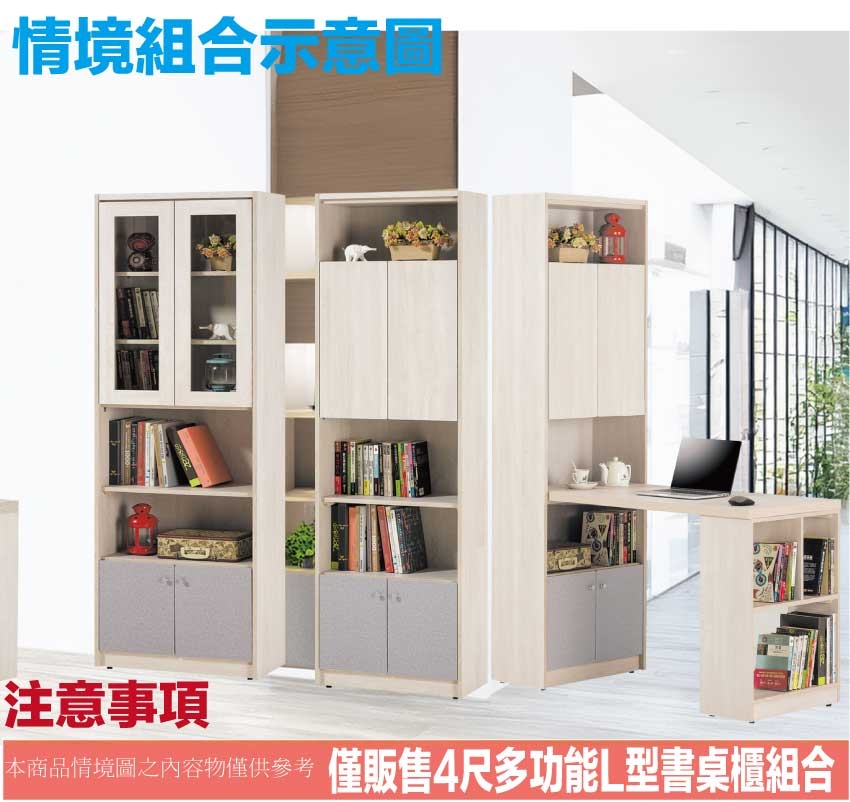 【綠家居】 愛利4尺雙色四開門書桌櫃組合