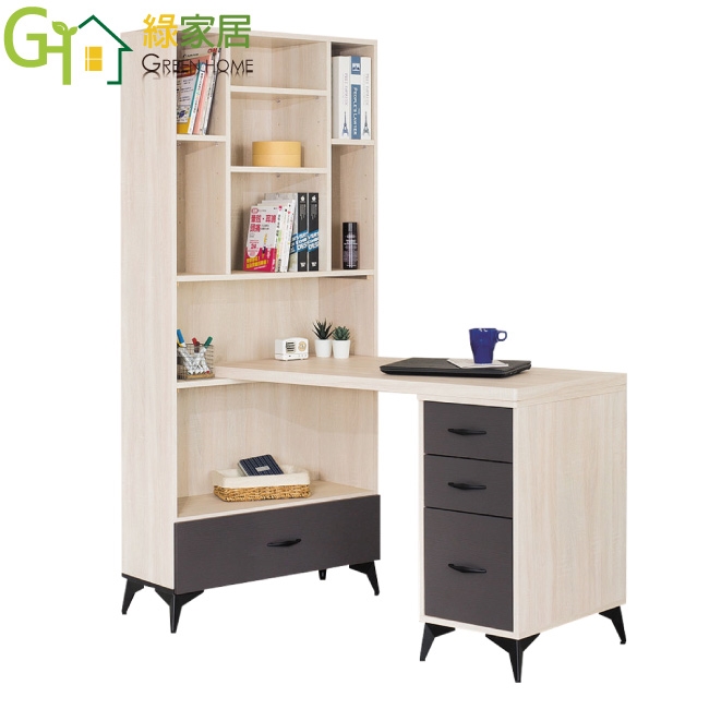 【綠家居】米雅雙色4尺四抽開放書桌櫃組合