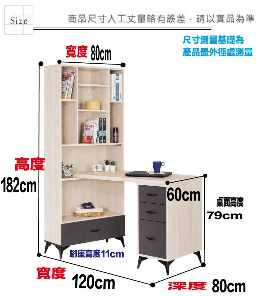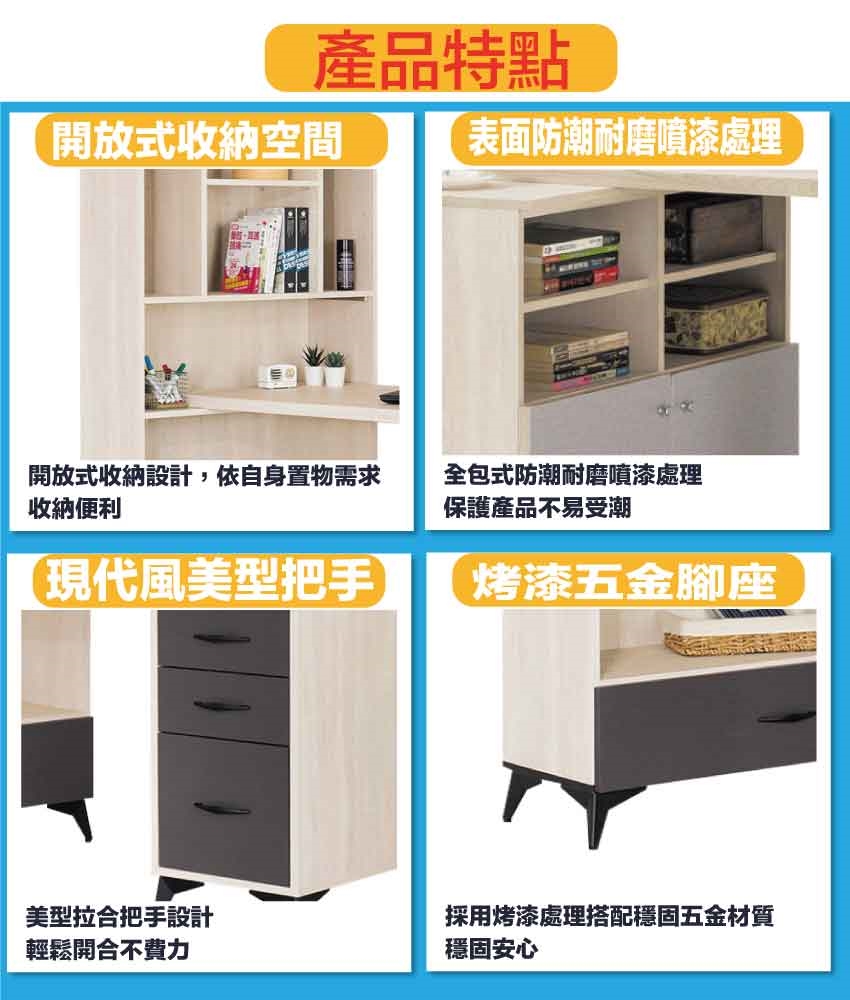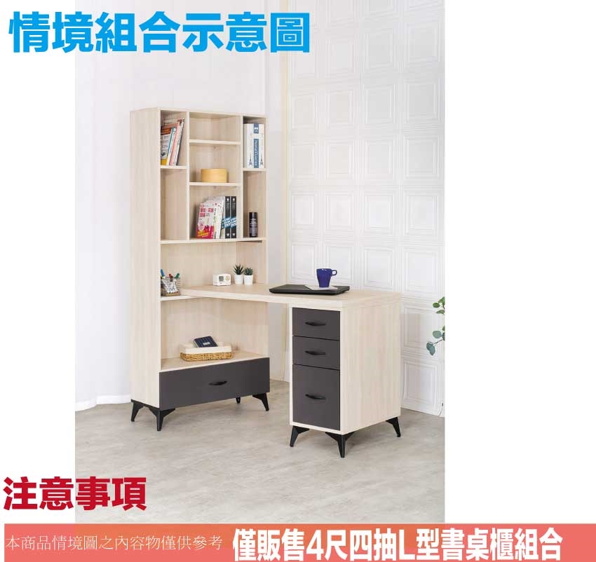 - ◆產品名稱:【綠家居】米雅雙色4尺四抽開放書桌櫃組合