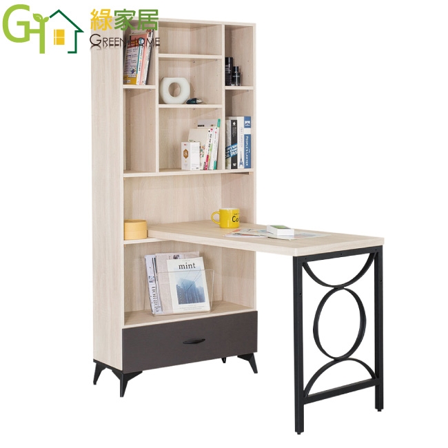 【綠家居】米雅4尺單抽開放鐵腳雙色書桌櫃組合