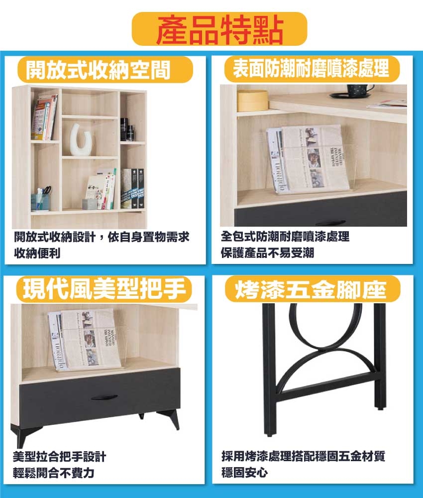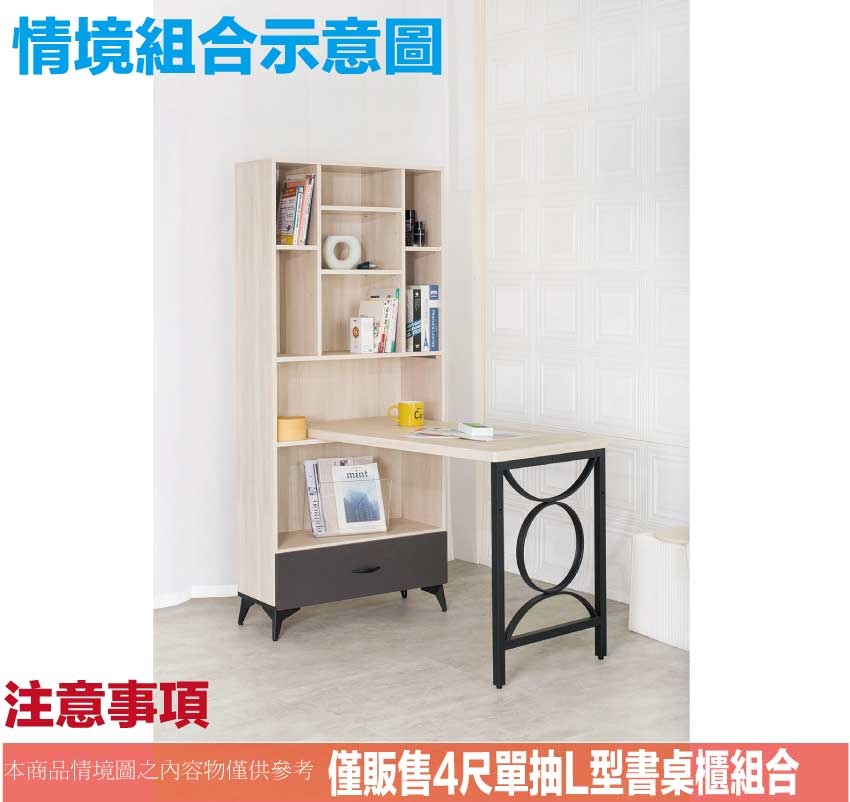 • ◆產品名稱:【綠家居】米雅4尺單抽開放鐵腳雙色書桌櫃組合
