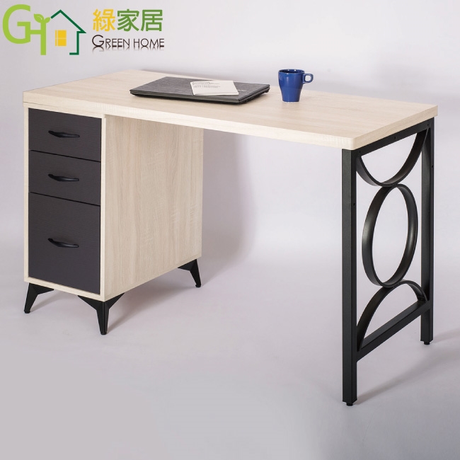 【綠家居】米雅4尺三抽鐵腳雙色書桌