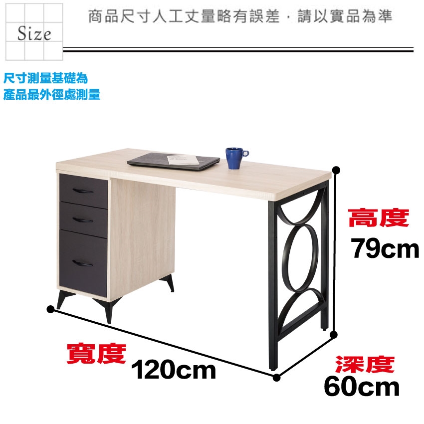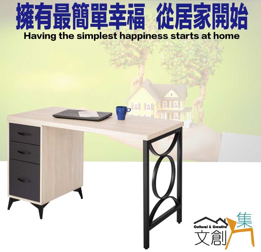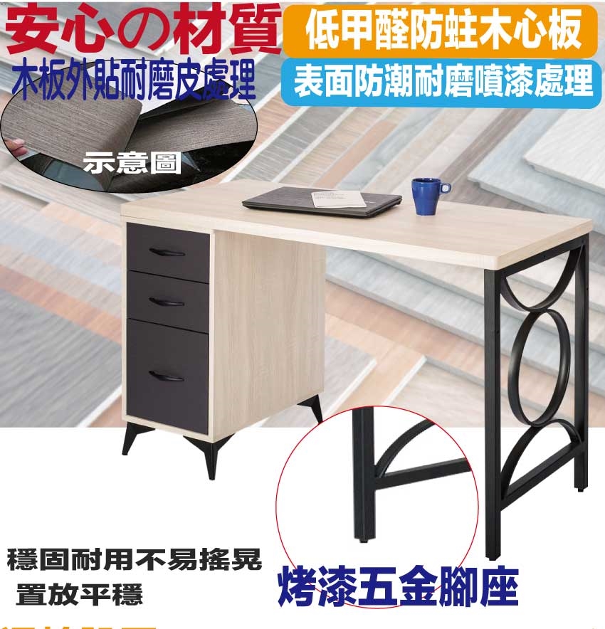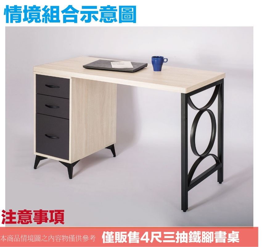 - ◆產品名稱:【綠家居】米雅4尺三抽鐵腳雙色書桌