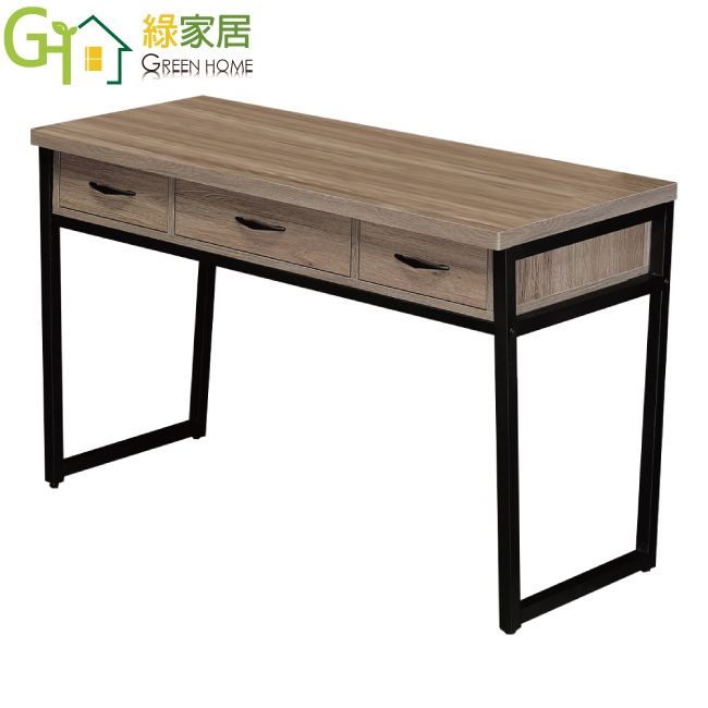 【綠家居】米雅灰橡4尺三抽鐵腳書桌