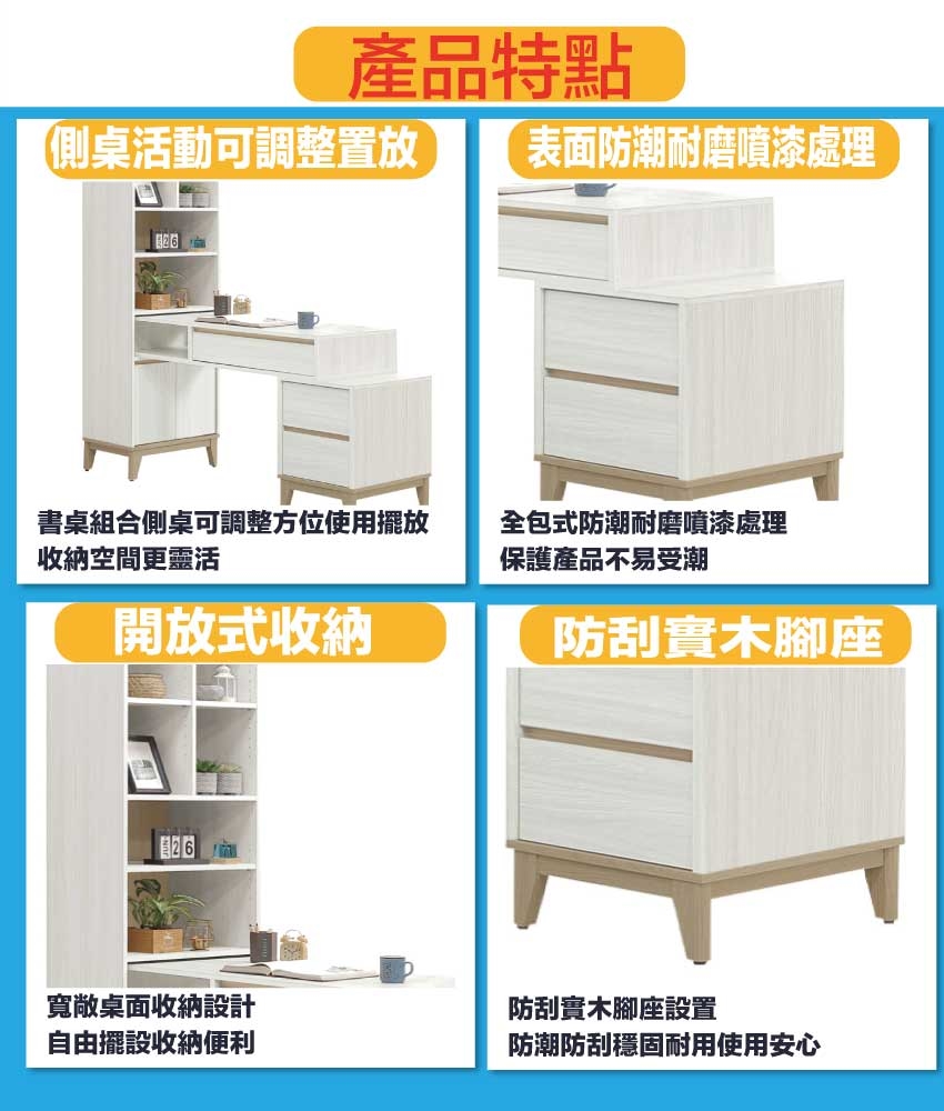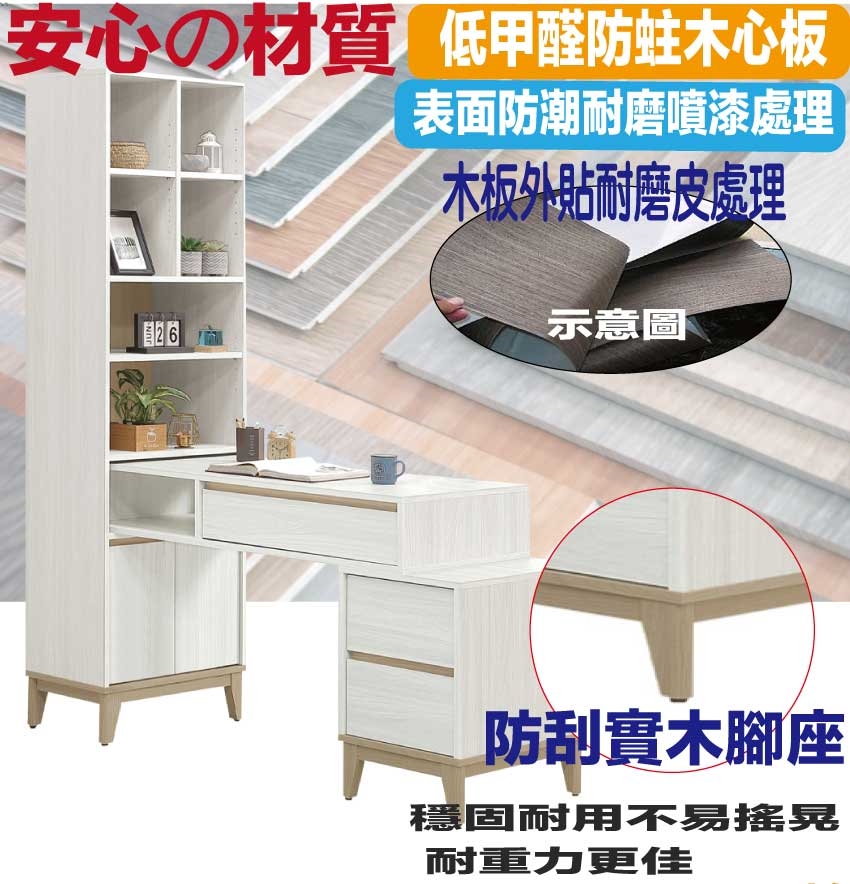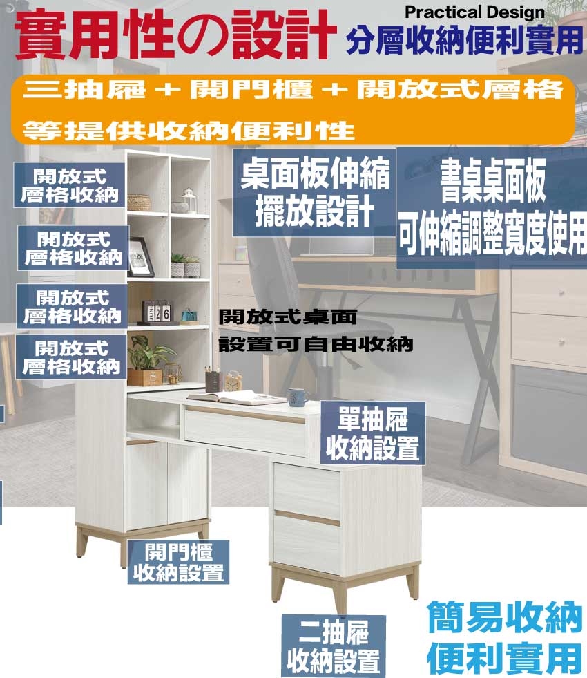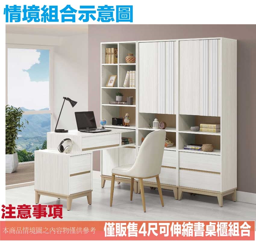 【綠家居】亞畢克4尺二門三抽書桌櫃組合(書桌面板可伸縮使用)       現代雙色系+安心材質製造,使用放心+搭配居家更便利,採用防蛀木心板+防刮實木腳座+五金滑軌結構+防夾手緩衝門片五金等安心材質製造 ,外層採用防潮耐磨噴漆處理搭配採用開門櫃+三抽屜+內&外開放層格等收納空間設計,全由專人配送到家,專業安心服務,替你省下更多時間!