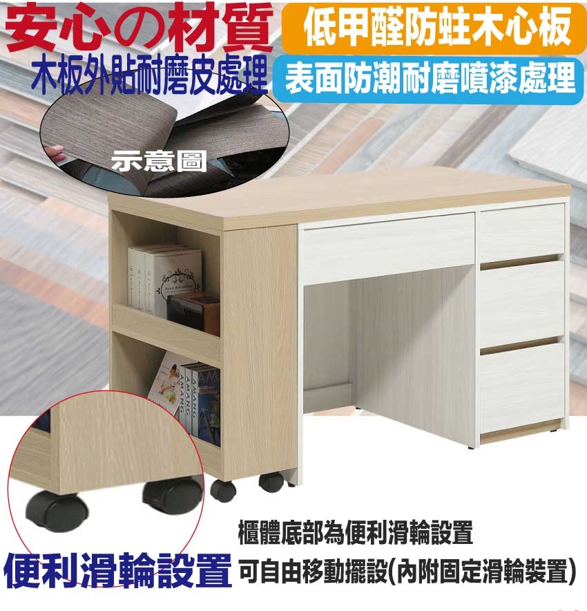 ★偏遠地區需額外加收運費,下標請先問與答詢問★ ★下訂前注意 由於商品流動較快,下訂前請先詢問是否有貨在下訂喔~★ 【綠家居】亞畢克4尺四抽可變化書桌組合(書桌面板可伸縮&櫃身可變化使用) 現代雙色系+安心材質製造,使用放心+搭配居家更便利,採用防蛀木心板+防潮耐磨底座+五金滑軌結構等安心材質製造 ,外層採用防潮耐磨噴漆處理搭配採用四抽屜+開放層格等收納空間設計,全由專人配送到家,專業安心服務,替你省下更多時間!