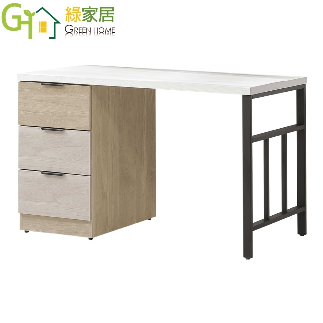 【綠家居】 蘿克4尺三抽鐵腳書桌(附插座單個)
