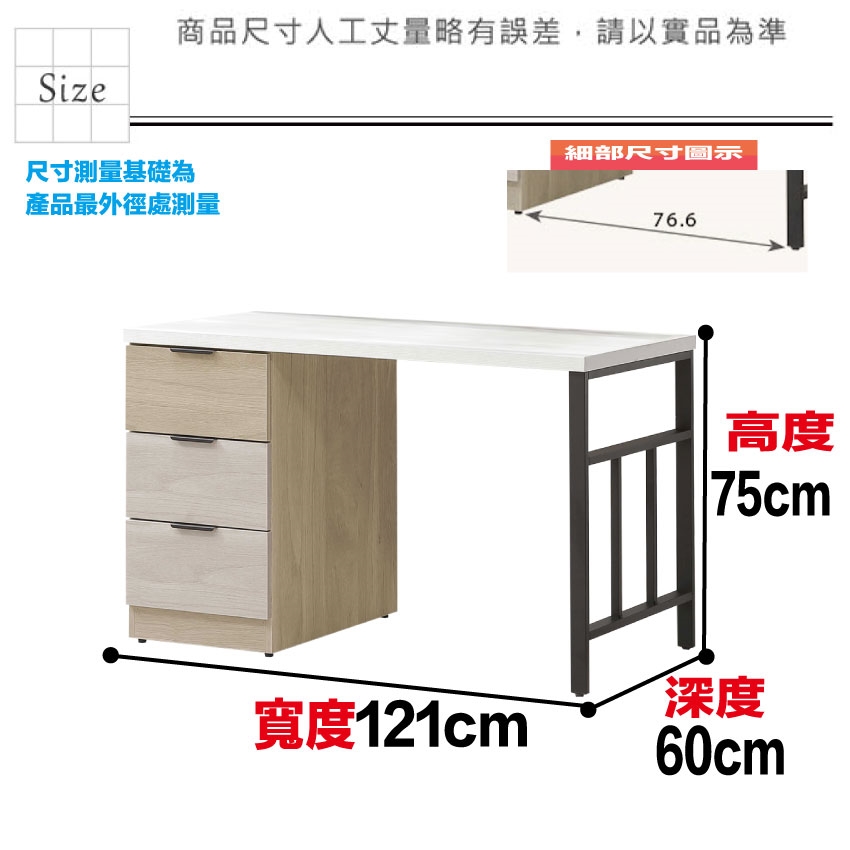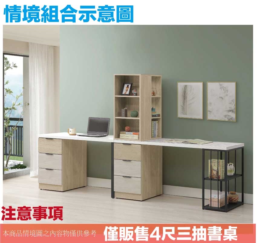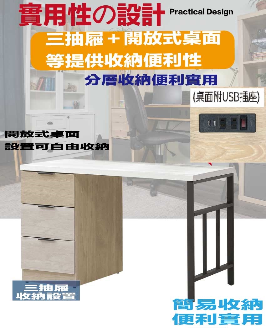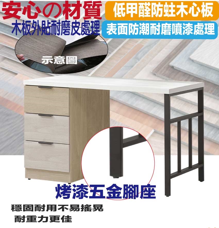 - ◆產品名稱:【綠家居】 蘿克4尺三抽鐵腳書桌(附插座單個)