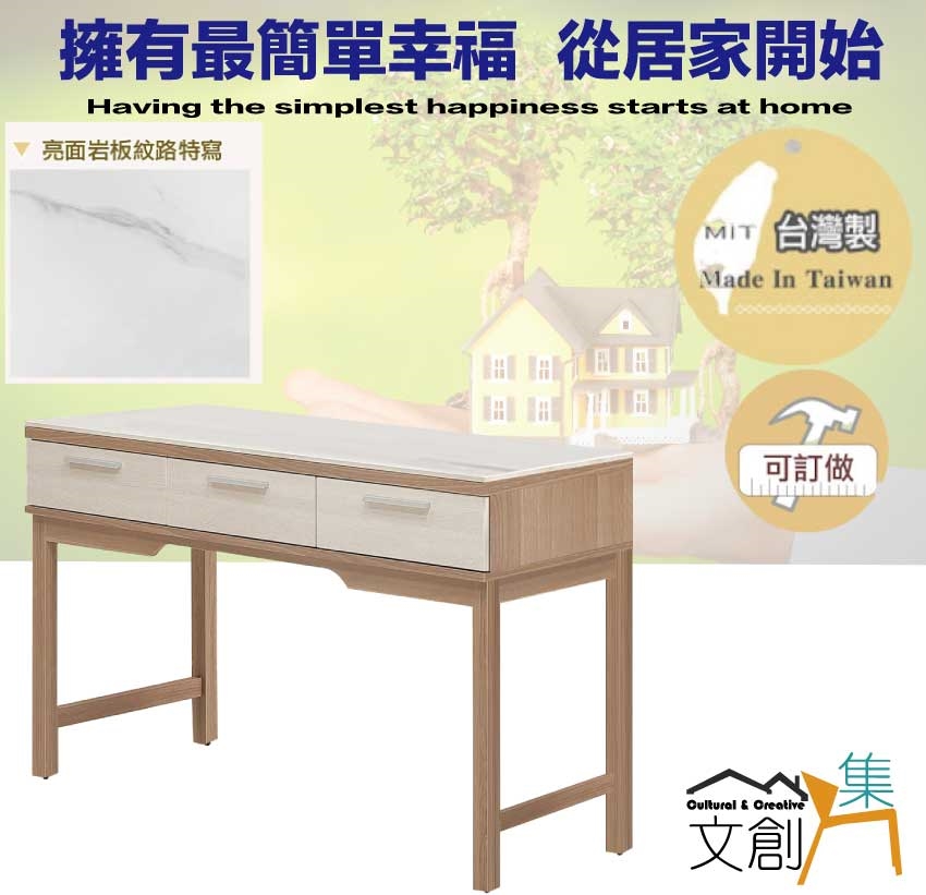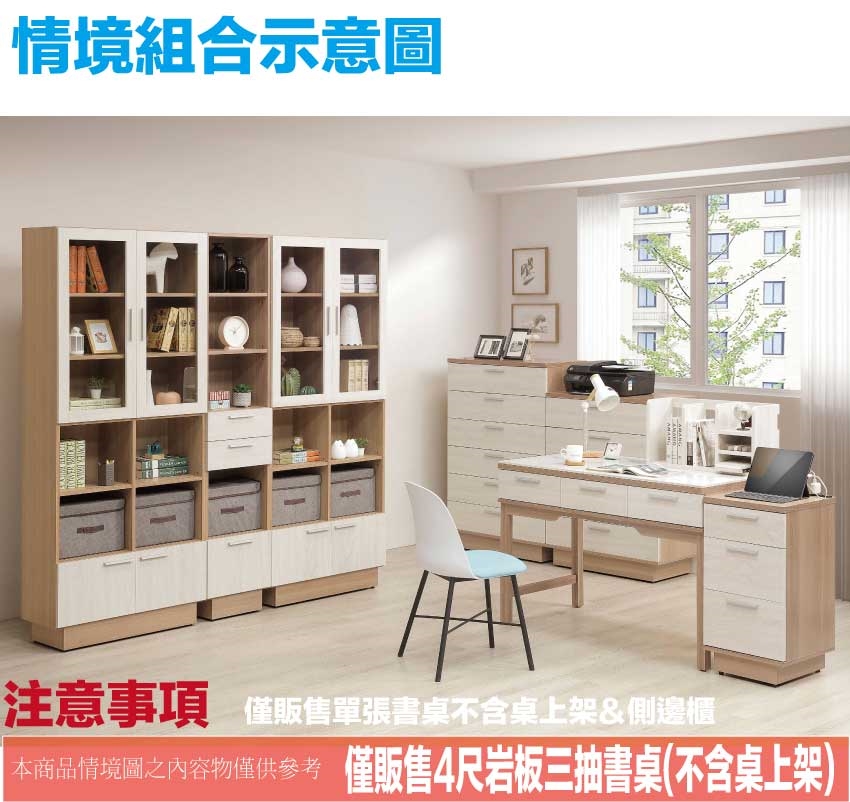 【綠家居】賓利雙色4尺岩板三抽書桌