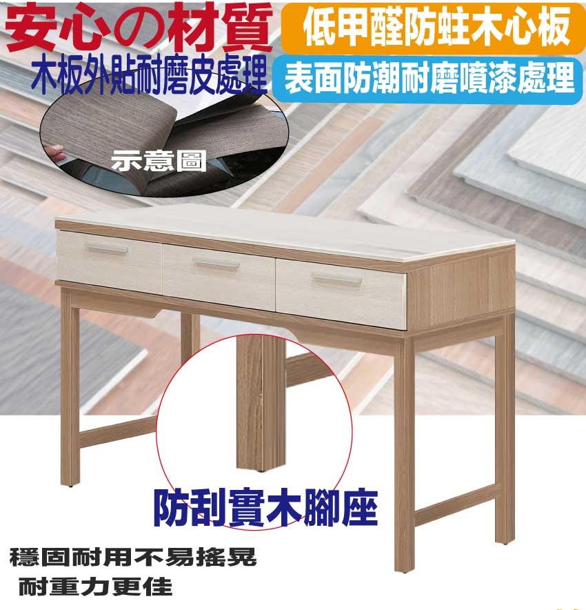 ★偏遠地區需額外加收運費,下標請先問與答詢問★ ★下訂前注意 由於商品流動較快,下訂前請先詢問是否有貨在下訂喔~★ 【綠家居】賓利雙色4尺岩板三抽書桌 木紋雙色系+安心材質製造,使用放心+搭配居家更便利,採用防蛀木心板+防刮實木腳座+10mm高硬度岩板頂板等安心材質製造 ,外層採用防潮耐磨噴漆處理搭配採用三抽屜+開放式桌面等收納空間設計,全由專人配送到家,專業安心服務,替你省下更多時間!