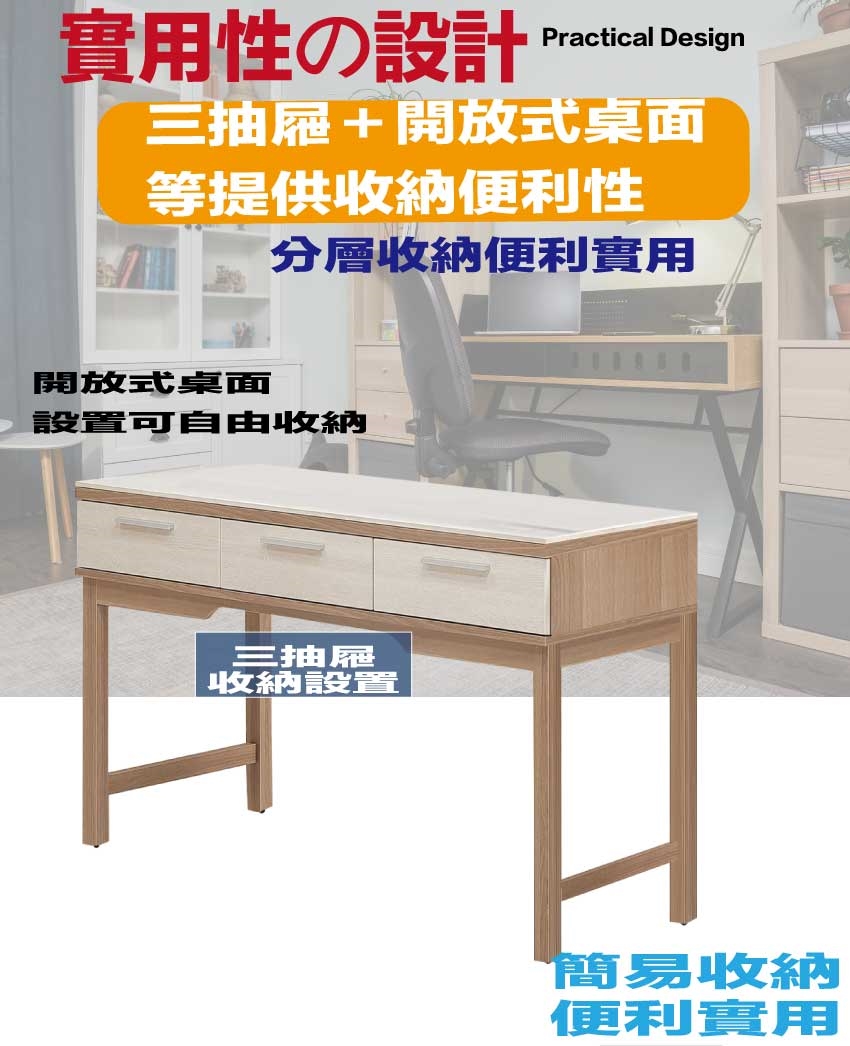 搭配採用三抽屜+開放式桌面等收納空間設計