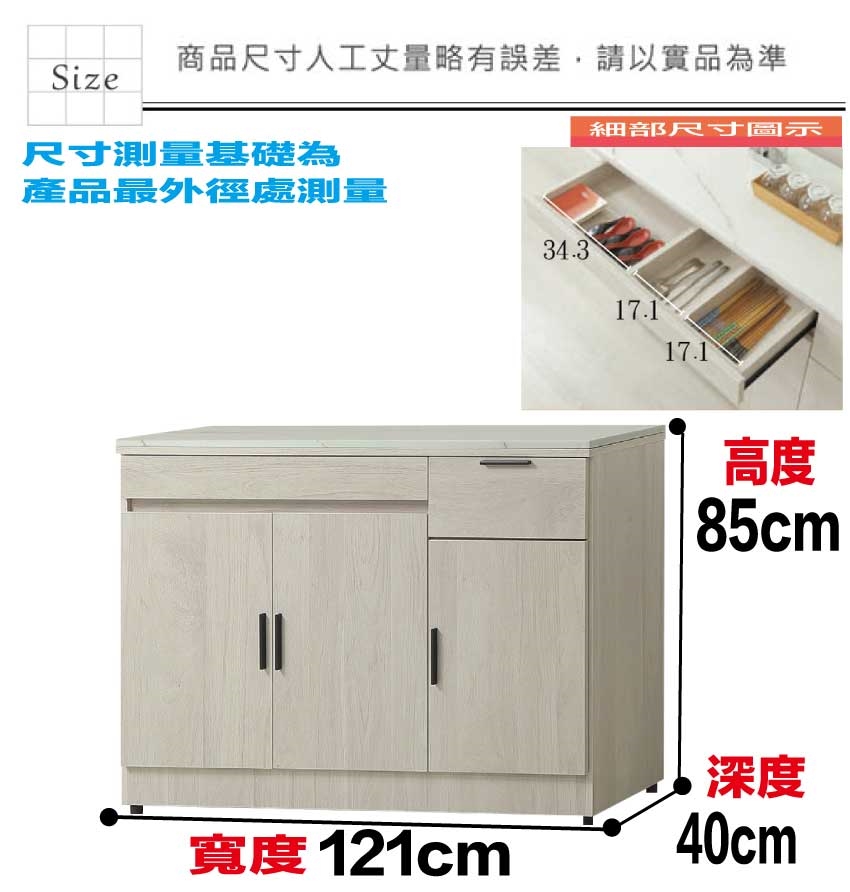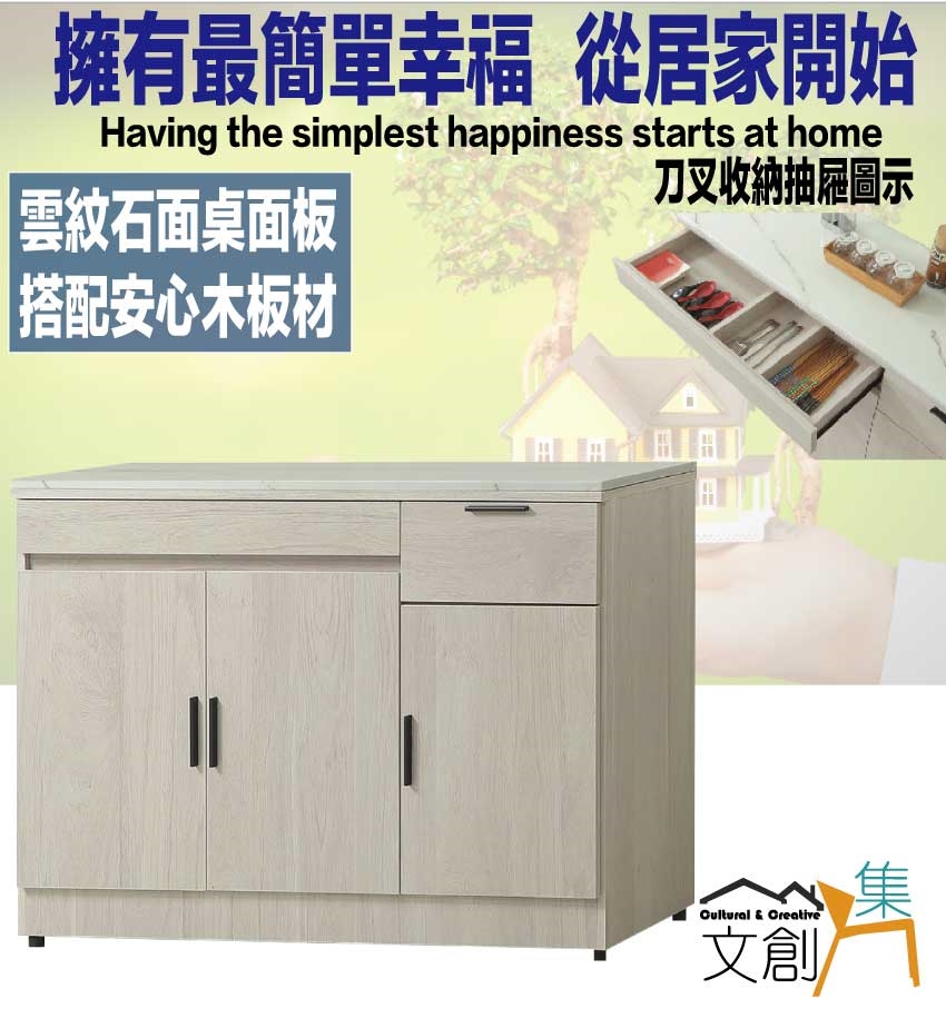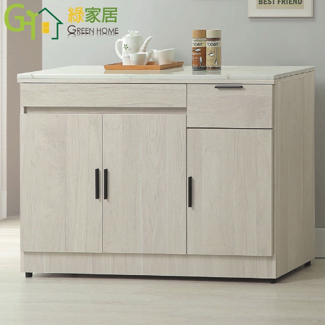 - ◆產品名稱:【綠家居】卡帝4尺雲紋石面低餐櫃(內含刀叉收納抽屜)