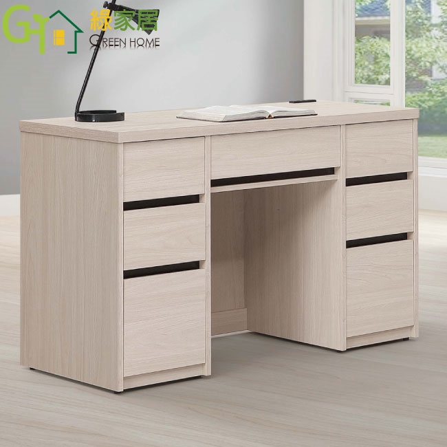 【綠家居】凱拉4尺七抽書桌(桌面設置便利插座)